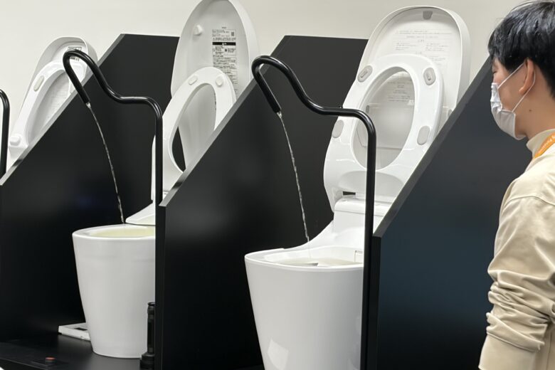 *スケルトン便器✨での節水技術の実演